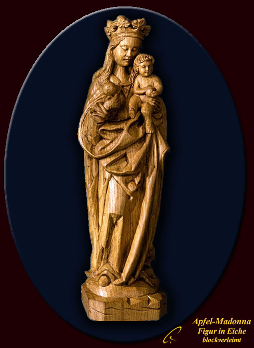 Figur - Apfelmadonna, in Eiche geschnitzt u. gewachst.