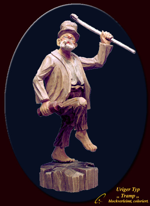 Uriger Typ - Tramp geschnitzt, u. coloriert.